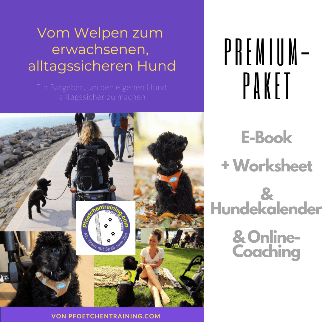 Du bekommst in diesem PREMIUM-Paket nicht nur ein E-Book zum Lesen, sondern auch ein Worksheet, den digitalen Hundekalender (die neue Version), und 1 Online-Coaching bei mir – inkl. Trainingsplan und kurzer WhatsApp-Nachbetreuung (eine Videoanalyse). Ich empfehle dir, diese Trainingsstunde NACH dem lesen des E-Books in Anspruch zu nehmen, damit wir hier auf Themen aus dem Buch noch genauer eingehen können, oder aber auf komplett andere Hundetrainingsthemen die dir am Herzen liegen und die dir und deinem Hund noch Probleme bereiten.